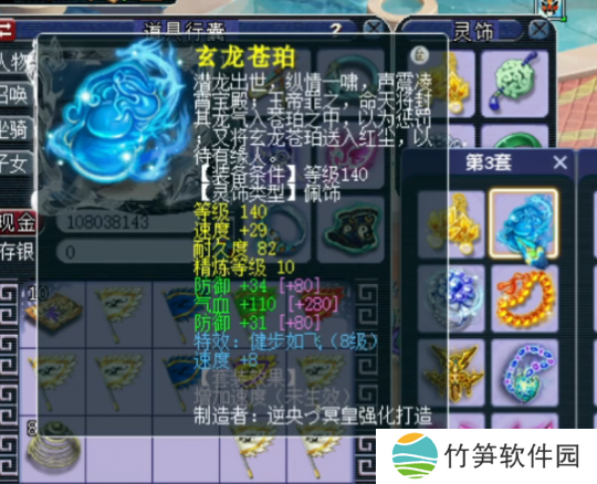 140级佩饰,主属性速度,下排2防御1气血,带8级健步如飞。