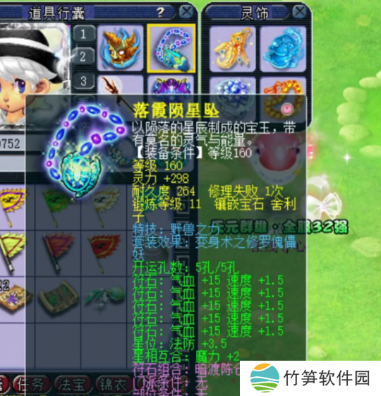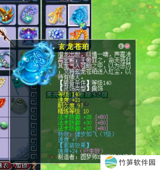 140级佩饰,主属性速度,下排3法防,带7级健步如飞。