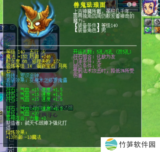 140级罗汉男头,14锻月亮石,熔炼后防御+259。