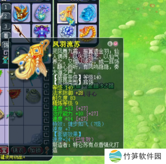 140级耳饰,主属性法防,下排1治疗2速度,带7级健步如飞。