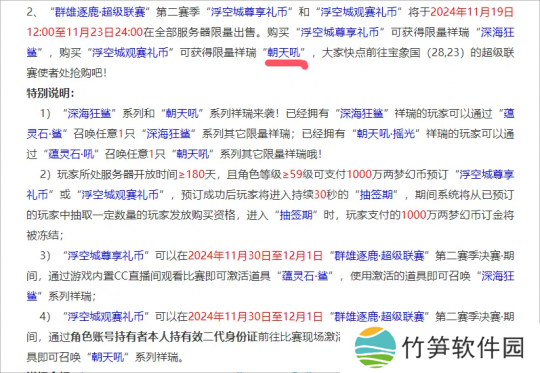 不知道各位玩家是否注意到了本次群雄逐鹿第二赛季的线下祥瑞,本次群雄逐鹿的第二赛季上线的祥瑞总共有两个,一个是深海狂鲨,另外一个是朝天吼。不过深海狂鲨的获得方式是线上观赛激活,但是朝天吼的获得方式则是线下观赛激活,大家喜欢新出的朝天吼祥瑞吗?
