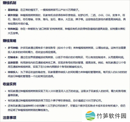 种摇钱树的树苗也算梦幻西游里的经典休闲玩法了,树苗的奖励更是玩家们最关心的事情。有玩家就让AI机器人分析了梦幻西游中摇钱树的收益,不过要开几十个账号来种也有点不切实际了,大家还是休闲娱乐一下就好,不要把种树苗当做赚钱的方式啊。