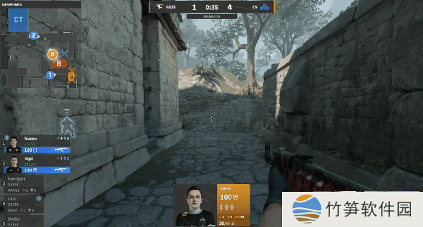 C9先做进攻方,手枪局直接提速中路将FaZe平推,次回合FaZe选择纯e。