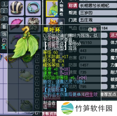 60级耳饰,主属性法防,下排2速度1封印,带8级通真达灵。