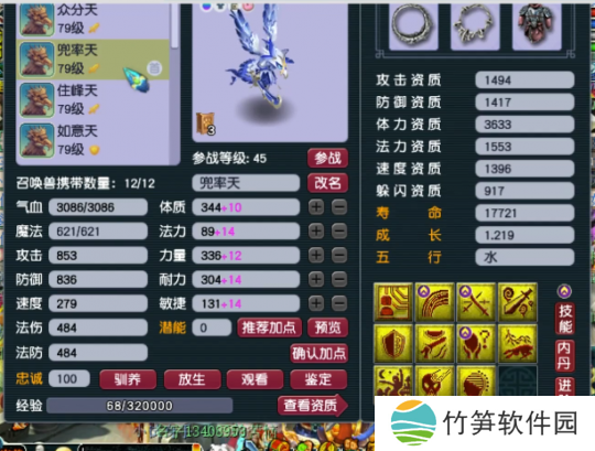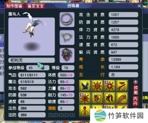 这位玩家的装备看似平平无奇,实则暗藏玄机。他选择了一套70级的简易特技装备,每一件都经过精心挑选和熔炼,使得整体属性在69级辅助中算得上是中上水平。满符面板属性气血高达6184,防御1457,速度735,法防795,这样的属性为他的单挑之路奠定了坚实的基础。
