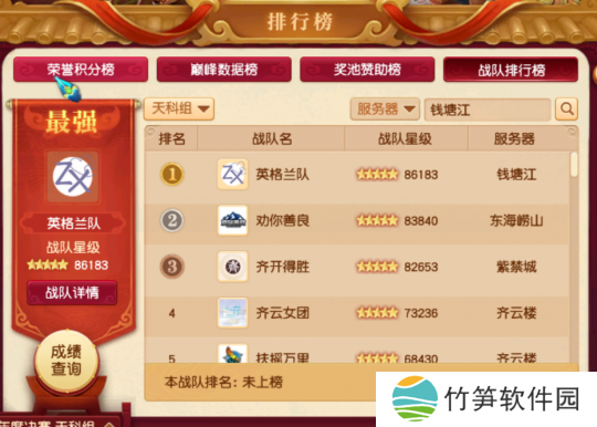 群雄逐鹿方面,除天元组战力卓群之外。钱塘江的天科组和天启组也有着实力强劲的战队存在。尤其是天科组的“英格兰队”是群雄逐鹿老牌名宿,曾拿下群雄逐鹿系列赛多个天科组冠军,目前仍是天科组战队排行榜榜首。