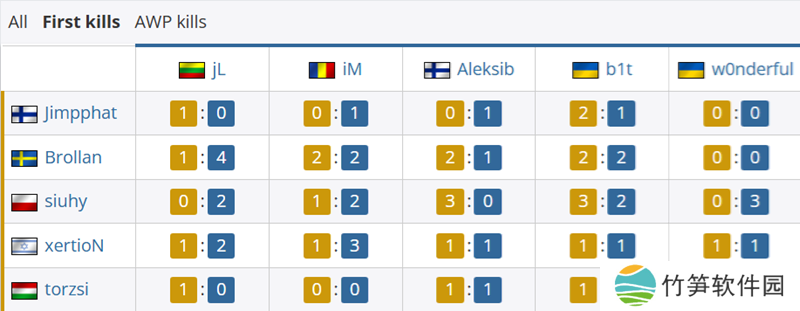 首杀数据上,Brollan和siuhy各自为MOUZ拿到了7个首杀,而NAVI方面iM和jL各自为队伍拿到了8个首杀。