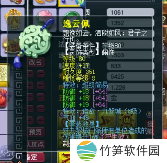 80级超级简易佩饰,主属性速度,下排3防御,带8级宿敌·九黎城。