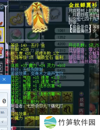 140级无级别女衣,17锻舍利子,熔炼后防御+260,魔力+27,体质+33。