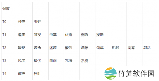 虫蛀:开局没有种蛊那么强,但是后续成长起来非常快,拥有百虫噬心后,一套百虫噬心后,触发蛊附上雾杀,雾杀击飞上蔓延,一回合很容易附加超过100%的法术易伤,同时这个技能还可以重复拿。