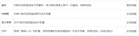 追击:正常拥有蛊附的单位就不会再触发蛊附了,当拥有这个技能后就再次触发,只要这个技能生效,它就可以让虫蛀、鞭挞、破杀这类效果叠加上去,同时让雾隐、凋零类技能效果发挥更好。