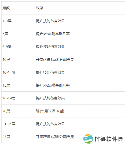 伏毒:蛊附为单位附加雾杀1-2层,有了伏毒后,变成2-3层,如果开局有种蛊,直接枯朽催化打出3层最高伤害,基本任何怪都能被秒杀。