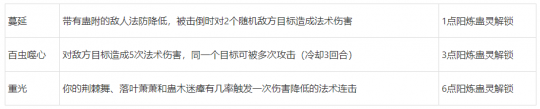 4、阳蛊点出百虫噬心后,一般直接往阴蛊的毒萃发展,重光多一次的法连跟满层的枯朽催化伤害完全不能比,当然如果BOSS打蜃气妖可以考虑点重光。