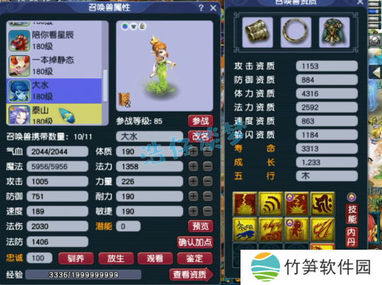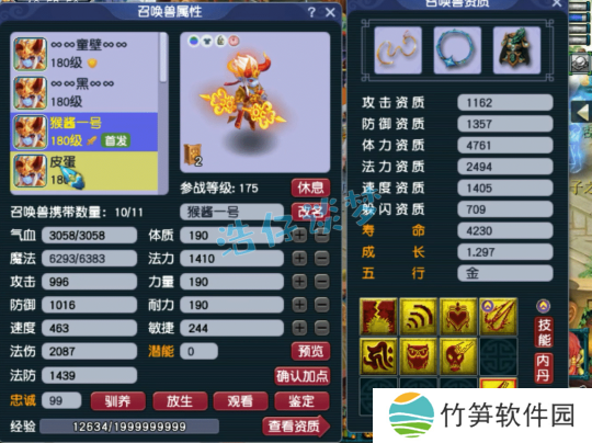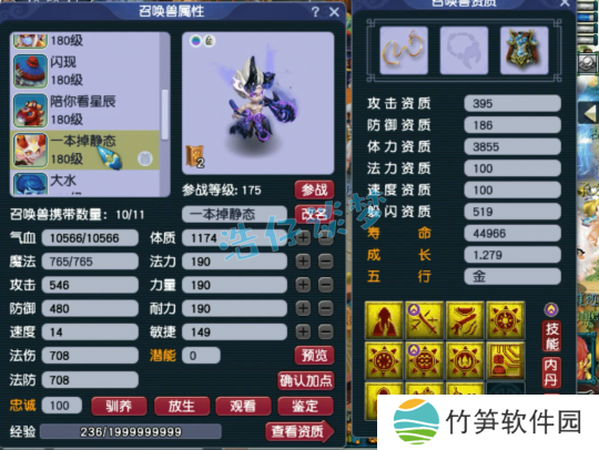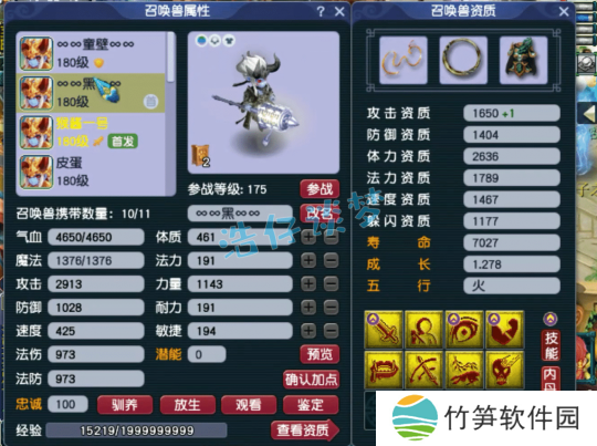11技能龟速四吸血宠魔化童子,这只速度资质降到很极限,防御资质需要养一养!