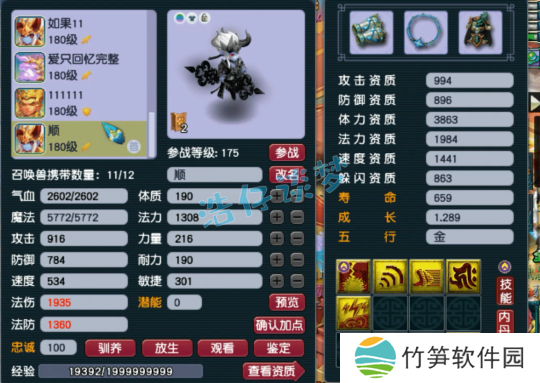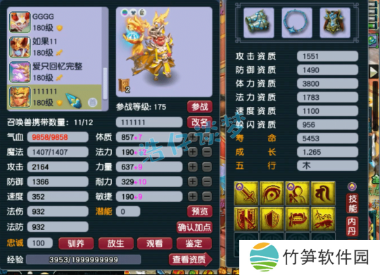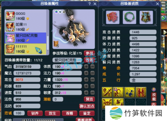 175级化生寺打符之后的面板属性,在拥有3146防御的同时,还有2039法防,抗性十足!