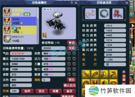 8技能血攻善恶童子,成长资质都比较极限,套装带的是高吸血!