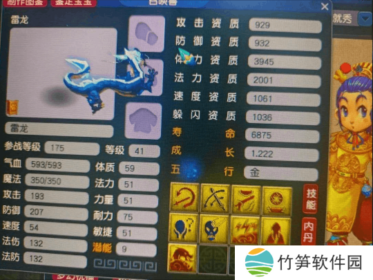 这位玩家合出来一只九技能,拥有着三个特殊技能的雷龙,这只雷龙拥有着出其不意、风起龙游和善恶有报三个特殊技能,只可惜这是一只野生宝宝,在属性点上吃了亏。