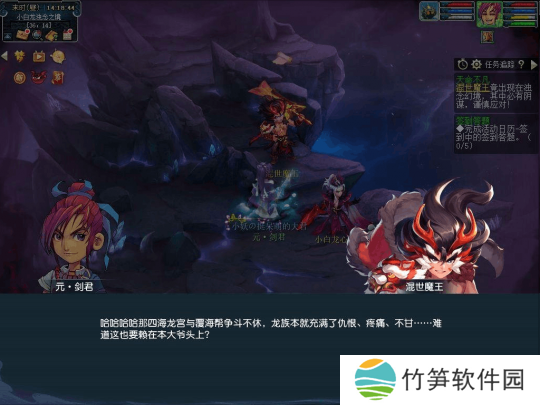 此时我们的道心也有所动摇,于是拼尽全力带着破碎的良善之念从小白龙的意识中脱身。获得力量的善念正在欣喜之时,被浊念侵蚀的心魔也接踵而至。 而跟着心魔来的,还有混世魔王。原来一切和我们推测的一样,混世魔王利用四海龙族与淡水龙族的矛盾挑起双龙之战,利用战争带来的负面影响扩大浊念。而在侵蚀孙大圣无果后,混世魔王便把目标对准了早有积怨的小白龙。