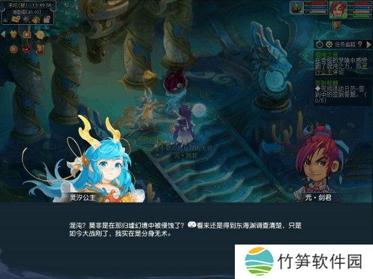 故事开始的时间节点在双龙之战大决战结束之后。我们听闻建邺城的戏班老板最近在以双龙之战为题排了一宫新戏,但正当我们围观之时,海誓阁的守卫却着急忙慌地找寻我们,说是灵汐公主有一封加急密信送来。 打开密信,我们得知海誓阁内的泽影珠被一股特殊的邪恶力量侵染,并且波及四海水族,灵汐公主等人对此束手无策,特派遣手下侍女携密信前来求救。