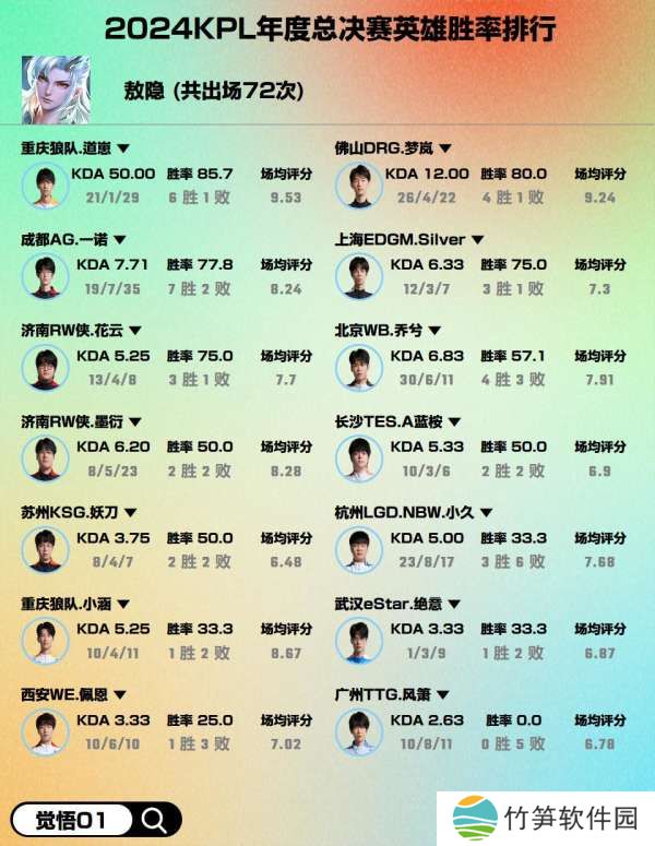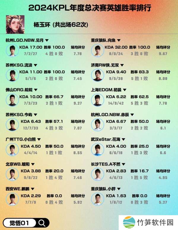 年总出场大于等于50次英雄胜率排行,你怎么看?