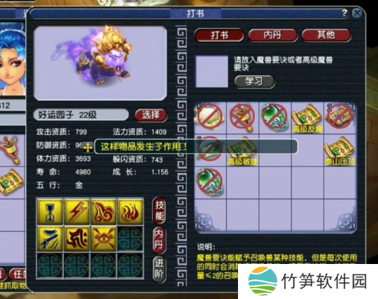 今天一位玩家购入了一只7技能的须弥观照万象谛听,光胚子价格就高达2w元,如果打成价值将翻倍!不过带双特殊技能的召唤兽打书难度太高了。