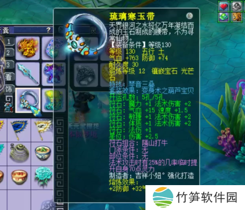 130级琴音三叠腰带,12锻光芒石,熔炼后防御+76,气血+795。