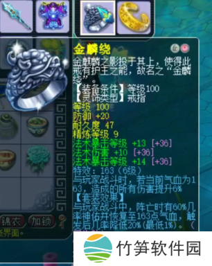 100级戒指,主属性防御,下排2法暴1法伤,带6级163。