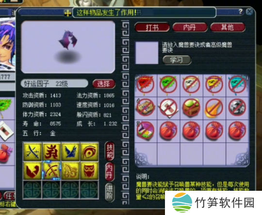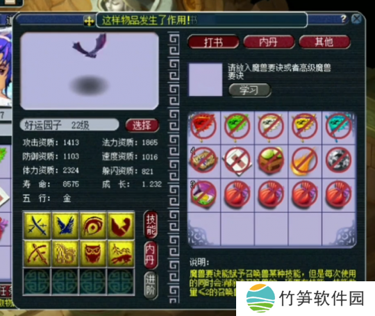 然后,开始上高级神佑,然而遗憾的是,这本技能书直接顶替掉了诸天正法这一特殊技能。由于特殊技能的掉落,我们不得不选择把胚子进行回炉重造。