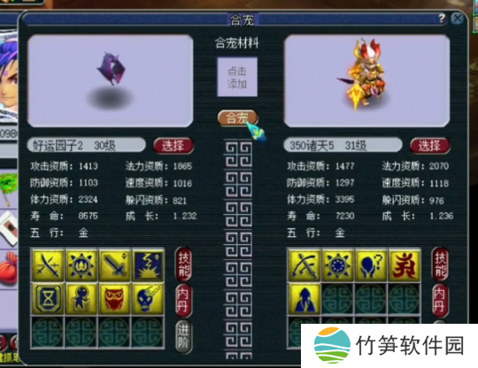 在垫掉了大蝙蝠的必带技能后,我们进行了回炉操作,将8技能的大蝙蝠与5技能的诸天正法童子进行了炼妖。