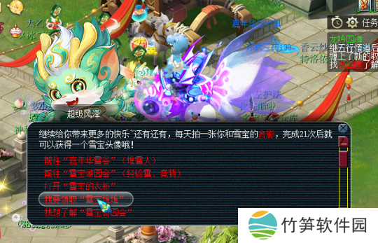 放置之后可以就对雪宝进行装备、合影、铲除等操作。如果你能在嘉年华期间合影21次,还可以获赠可爱的雪宝头像。