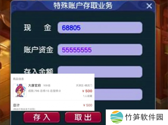 这位玩家花了500块钱在藏宝阁买了一个109级的角色,没有想到取号后却发现该角色的特殊账户中居然还带着5555万的梦幻币,这5555万的梦幻币也有约300块钱的价值了。