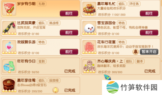 从狂欢日历来看,能获取欢乐积分的方式有环任务、小副本、整点怪物、小游戏、签到登陆、雪宝游园会、挑战任务、花车活动等。其中,最简单的就是每日签到、环任务、小副本和整点怪物。如果能卡点上线的小伙伴,还可以参与雪宝游园会、花车行夜宴等整点活动获取更多积分!