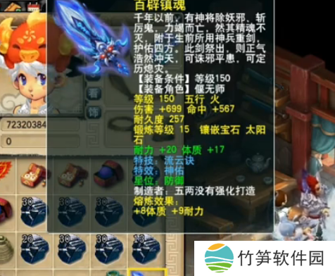 夫子庙服战老板化生寺的150神佑流云巨剑进行了一波熔炼,现在是极限属性+8体和9耐。