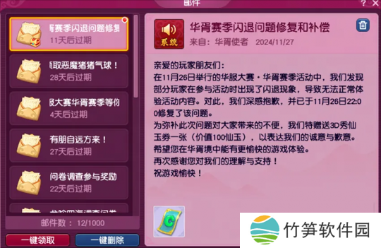 本周维护后,华胥镜3D秀新增了不少外观,还开启了新的华胥赛季。不过有玩家在体验时,会出现闪退的情况。官方也在第一时间进行了修复,并补偿了一张华胥镜的仙玉券,小伙伴们记得上线领取噢。