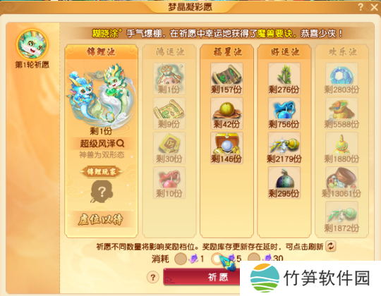 2024年12月18日20:00,将统计本服务器所有的祈福券,并根据此时的祈福券数量,决定抽取的超级风泽数量。在2024年12月18日20:00后获得的祈福券只能兑换商店中的奖励。