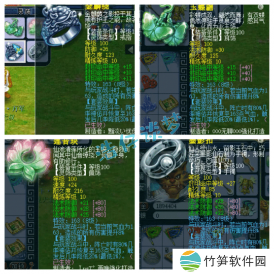 戒指和耳饰下排都是三封印,配饰和手镯下排都是三法防,全部打了10锻星辉石,特效都是8级163。