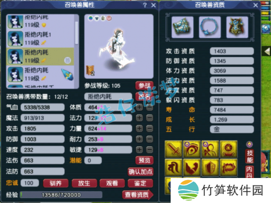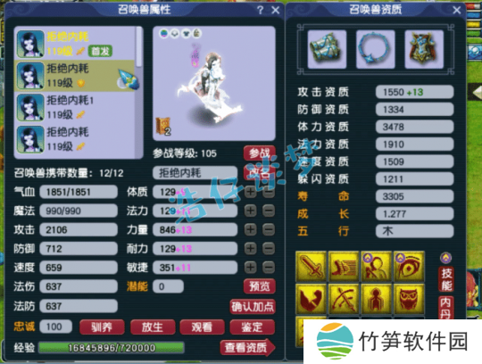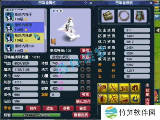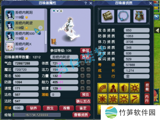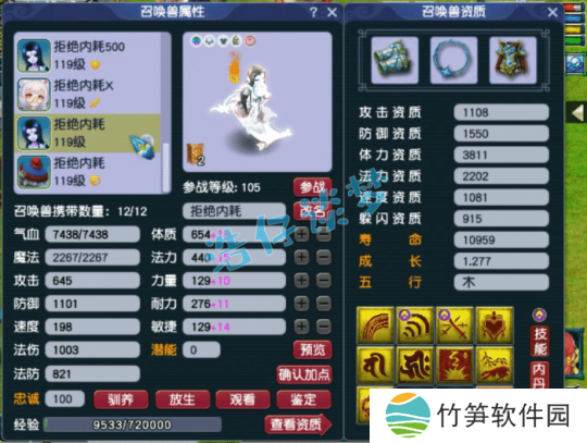 10技能净台善恶画魂,这只资质需要养一养,虽然有两个低级技能,但是也比较有用!