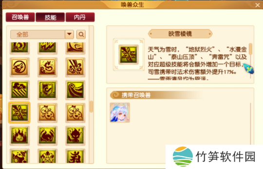 这个冰雪技能比较少见,来给大家科普一下:当天气为雪时,**会额外增加一个攻击目标,让召唤兽实现秒4的效果。