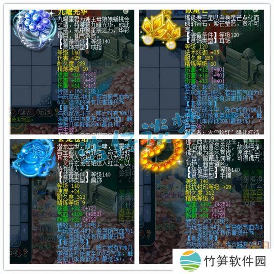 戒指下排双伤害一速度,耳饰下排三伤害,配饰和手镯下排都是双防御一气血,特效都是7级163。