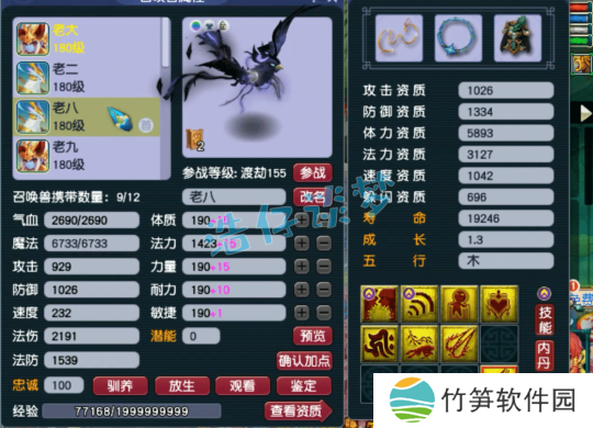 3技能夜舞倾城夜罗刹,打小夜三攻阵容,用来开场首发带!好了,这就是取出的175级狮驼岭全号了,真的是拎包入住,上号就能玩!从装备和宝宝细节搭配来看,卖家肯定耗费了不少心血,也算是忍痛割爱!各位觉得这个号怎么样呢?你喜欢吗?