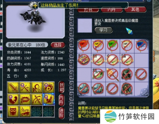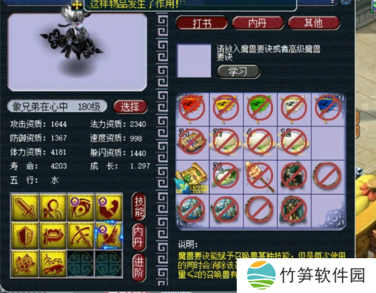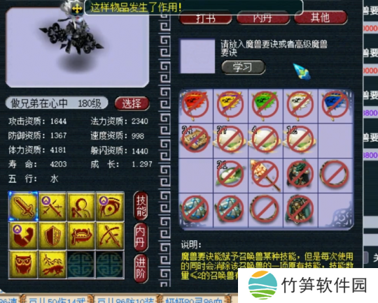 最后上高级飞行,掉高级防御,至此,玩家的召唤兽技能已齐全,且完全符合四赐福技能的要求,改书之旅**成功!令人惊叹的是,他仅用了五本高级兽诀便完成了这一壮举,运气之佳,实属罕见。