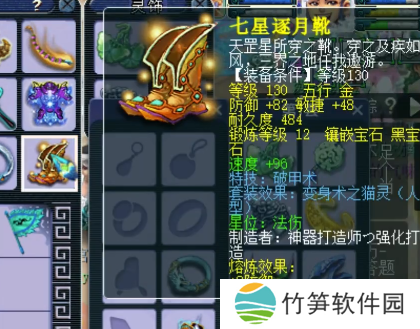 130级破甲术鞋子,12锻黑宝石,熔炼后防御+90,敏捷+38。