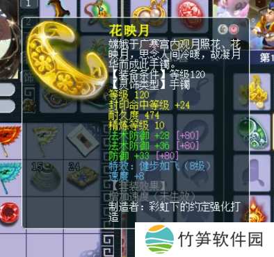 120级手镯,主属性封印,下排2法防1防御,带8级健步如飞。