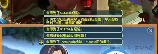 师门任务会奖励各位大量经验、金钱和储备金。