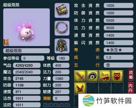 预算较高的小伙伴可以考虑超级泡泡,它不仅有高必、夜战提升伤害,还有高神提升生存能力,再加上感知、高飞行等技能,日常挂机毫无问题。而且,超级泡泡可以在高连套、高偷套之间来回切换,性价比非常高。
