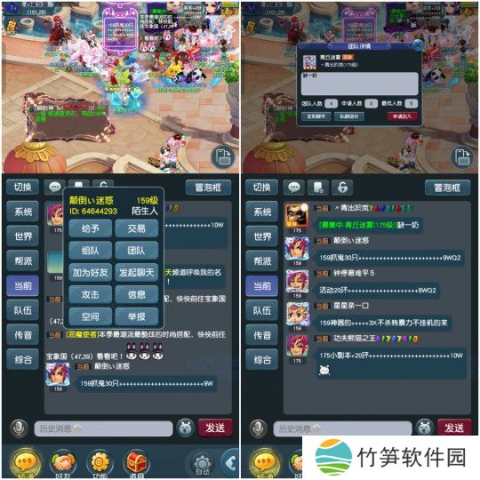 通过单手操作就能便捷地打开玩家信息菜单,进行组队,发起聊天等操作。频道中的副本招募信息也可以点击打开,只是招募详情会显示在上方的游戏场景界面中,进行后续操作存在一定不便。