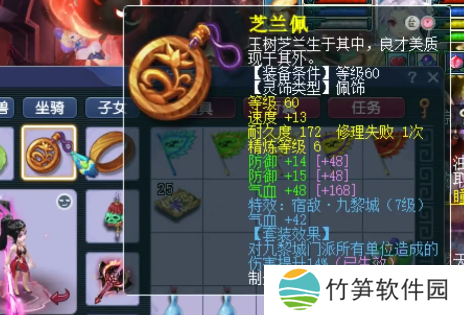 60级佩饰,主属性速度,下排2防御1气血,带7级宿敌·九黎城。