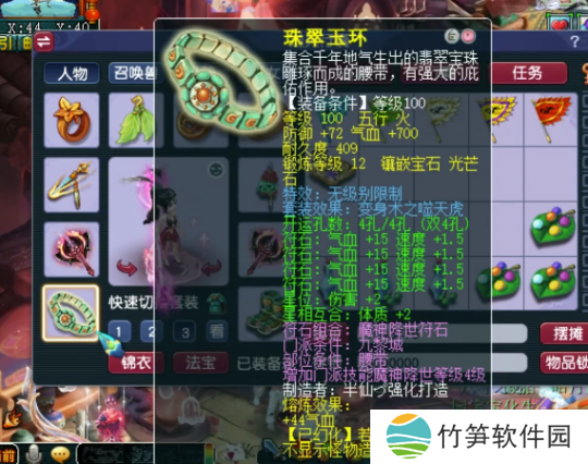 100级无级别腰带,12锻光芒石,熔炼后防御+72,气血+744。