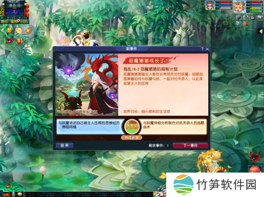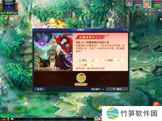 观看恶魔猪猪的奇遇故事并且帮它做出抉择,根据选择的不同获得对应的属性提升。这类事件提升的属性较多,需要玩家根据选项中的文案自行判断增加的属性,随着性格养成进度提高奇遇故事才会出现。