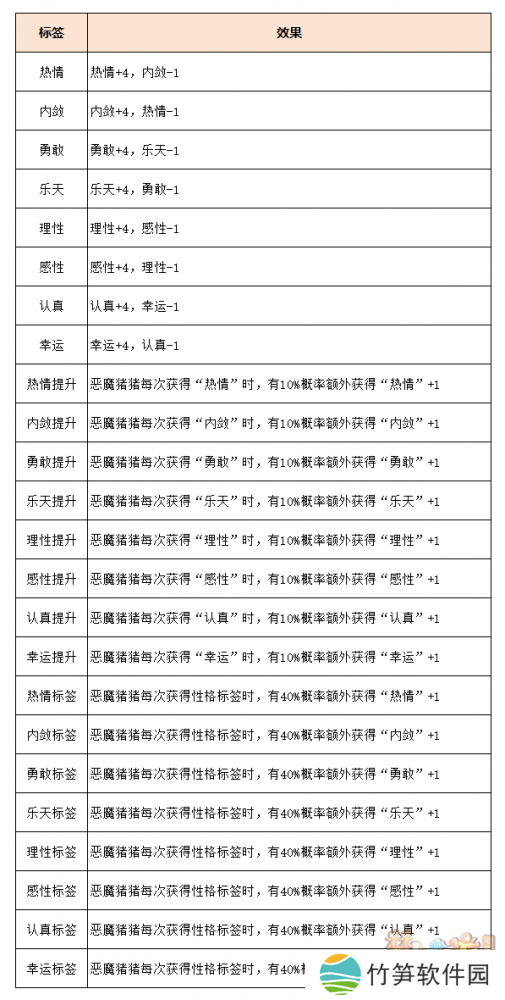 完成对应事件将获得恶魔猪猪性格属性的提升,具体可以分为两类事件。